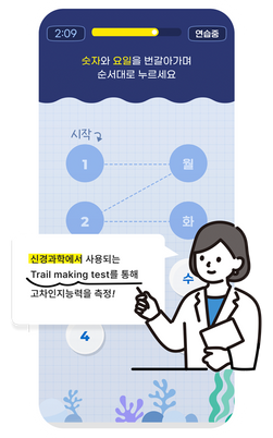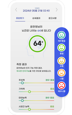 게임을 즐기면서 간편하게 인지 기능 저하 정도를 측정하여 치매 위험을 조기에 발견하고,